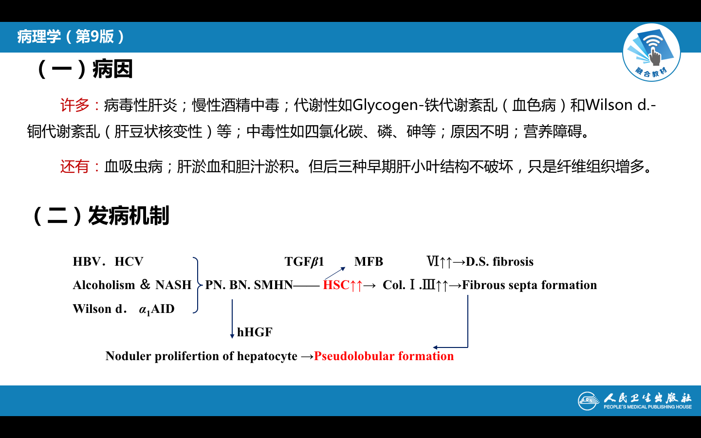 1.病毒性肝炎 在我国病毒性肝炎(尤其是乙型和丙型)是引起肝硬化的主要原因,其中大部分发展为门脉性肝硬化。肝硬化患者的肝细胞常显HBsAg阳性,其阳性率高达76.7%。