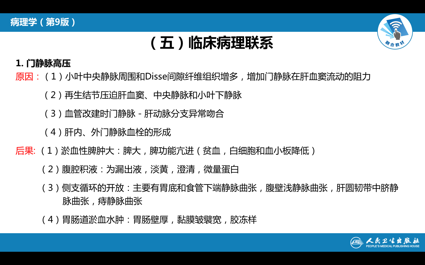 1.门脉高压症 门静脉压力超过1.96kPa(200mmHg)以上。这主要是由于肝的正常结构被破坏,肝内血液循环被改建造成的。