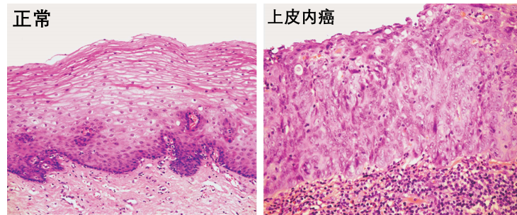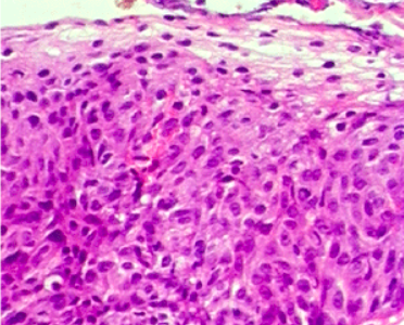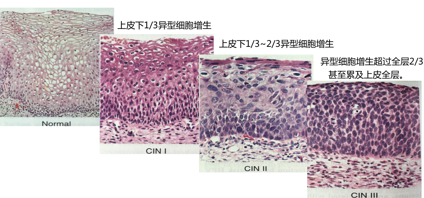 鳞状上皮的非典型性增生, 根据其异型性程度和或累及范围可分为轻、中、重度三级。轻、中度非典型性增生(分别累及上皮层下部的1/3和2/3),在病因消除后可恢复正常。而重度非典型性增生(累及上皮层下部超过2/3尚未达全层)则很难逆转,常转变为癌。