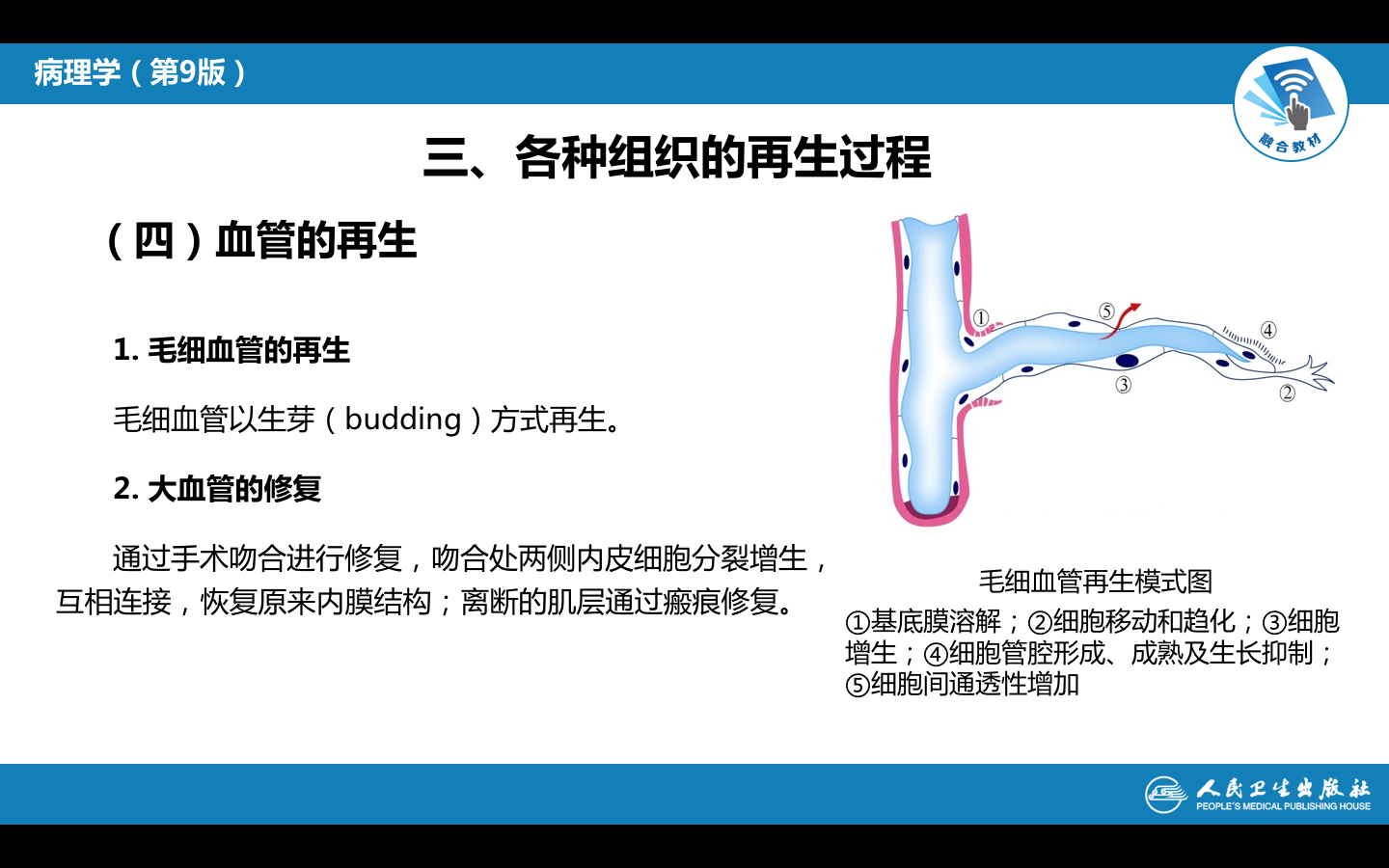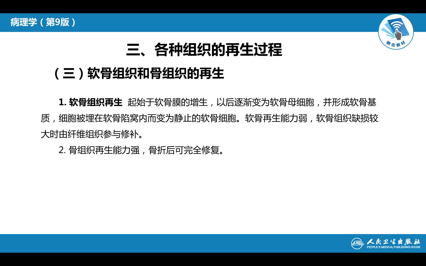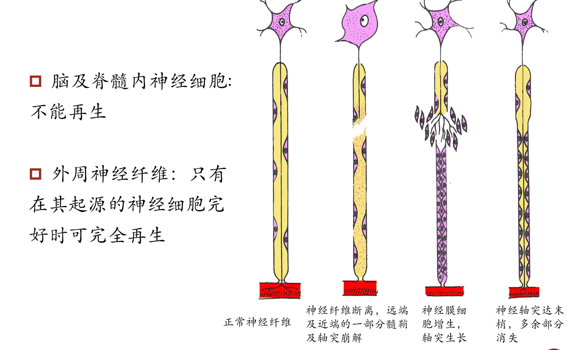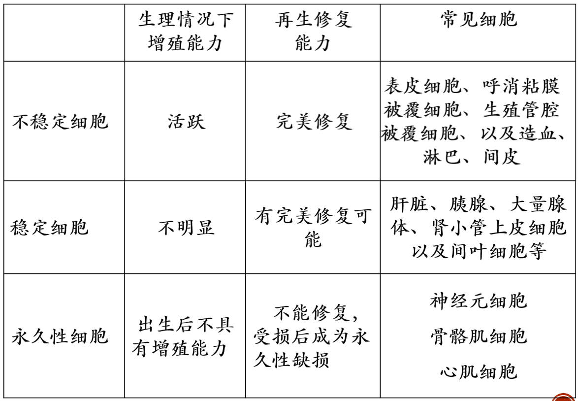 不同的组织,如上皮组织、纤维组织、血管、肌组织、神经组织等,根据本身的细胞再生能力、残存细胞数量、以及结缔组织网状支架是否存在决定了各自的再生过程。