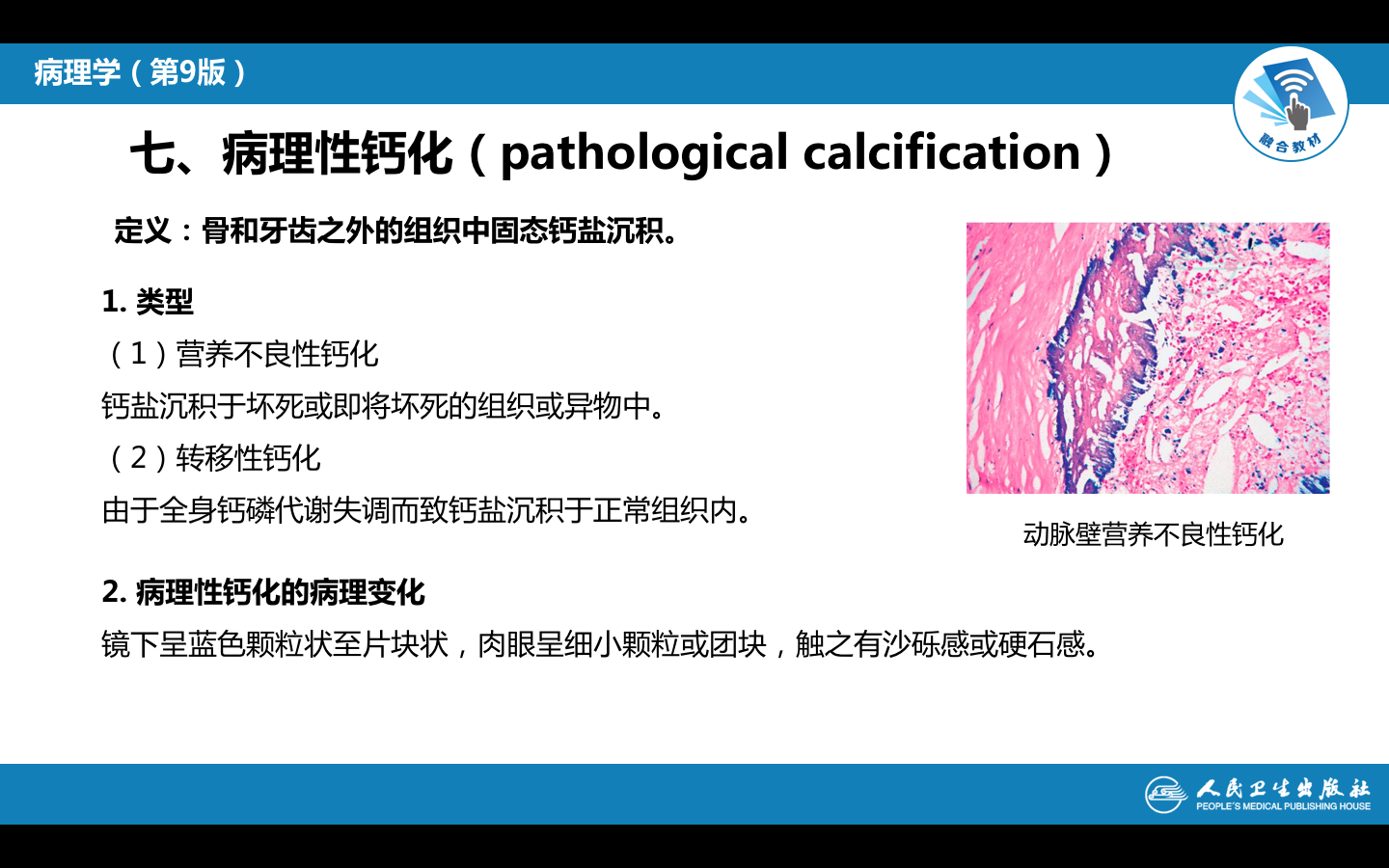 • 定义:骨、牙之外的组织中固态钙盐沉积