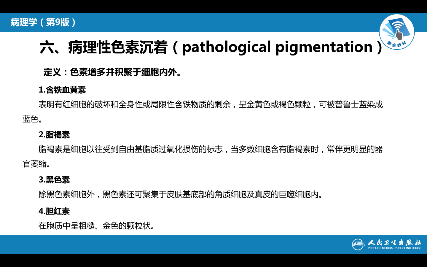 • 呈金黄色或褐色颗粒,可被普鲁士兰染成蓝色