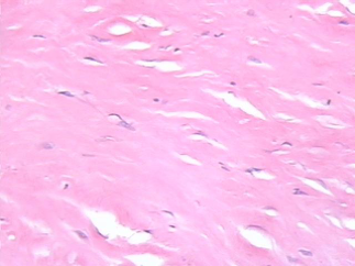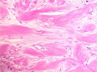 (2)纤维结缔组织玻璃样变 见于生理性或病理性结缔组织增生,是纤维组织老化的表现。