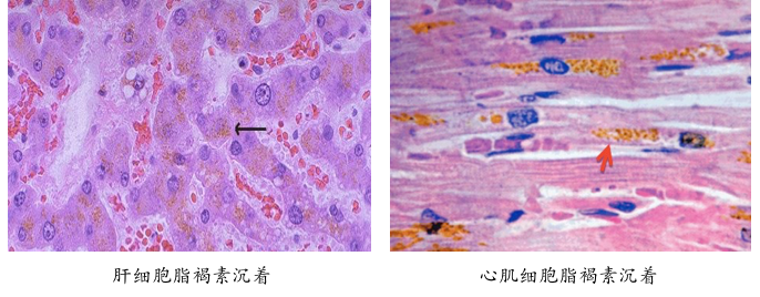 • 慢性消耗疾病、老年人的肝、心细胞胞浆中(消耗性色素)