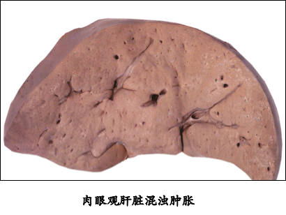 大体: | 器官体积增大,边缘圆钝,包膜紧张,切面外翻,颜色变淡。 |