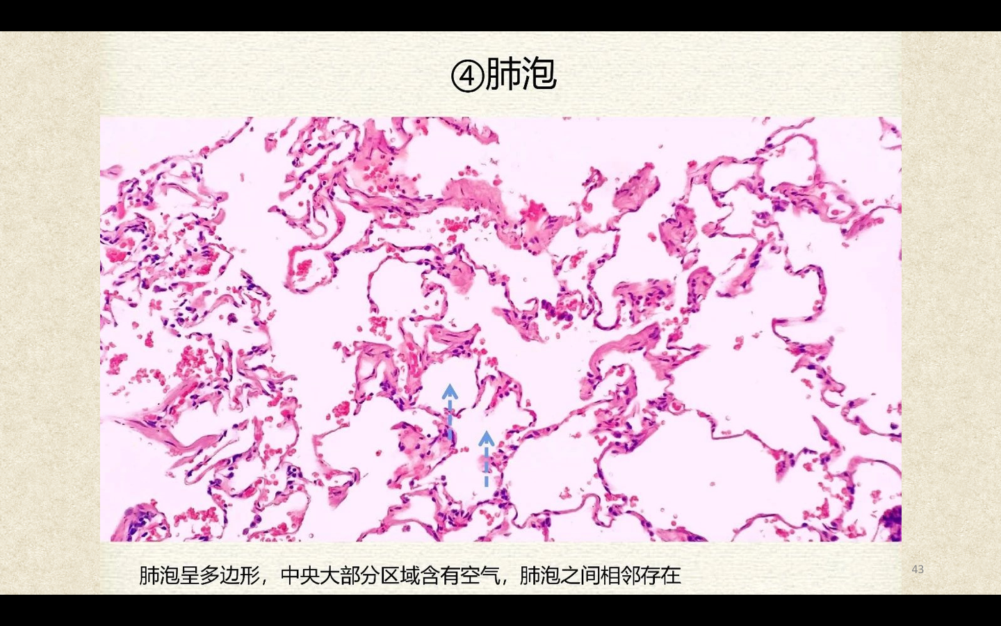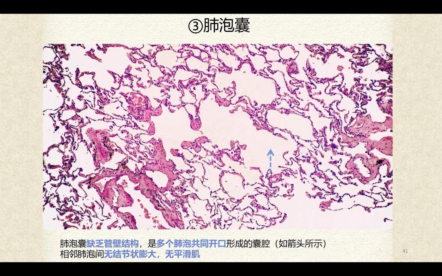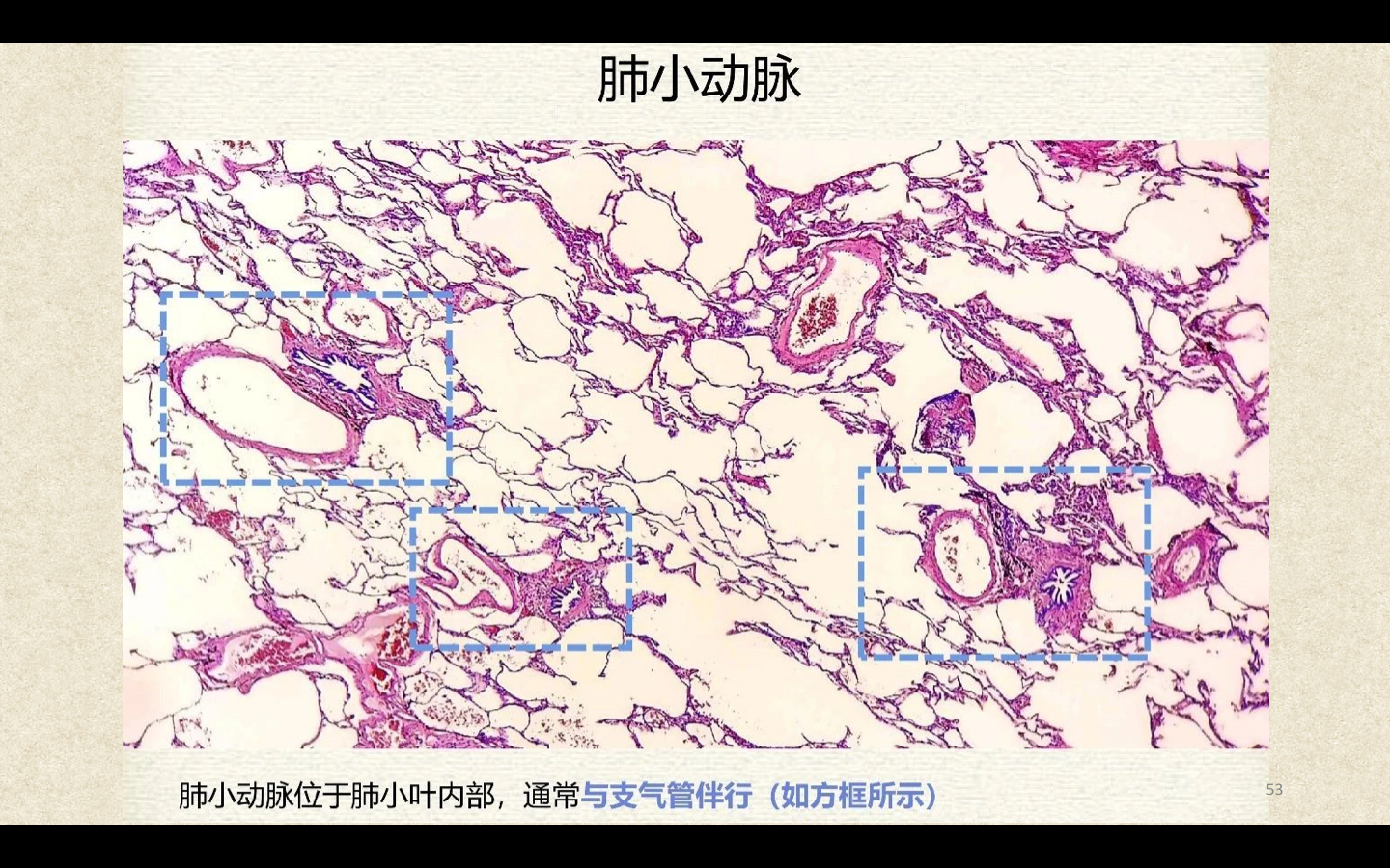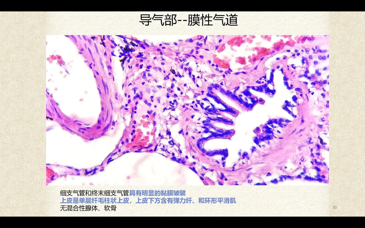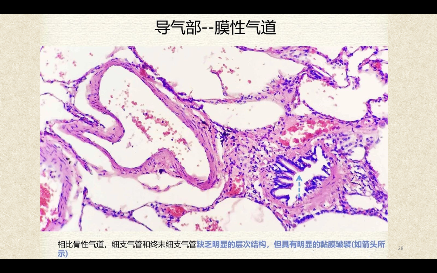支气管由肺门进入肺中逐级分支形成支气管树,直径<1mm、壁内无软骨及粘膜下腺体者称为细支气管,细支气管的末段称为终末细支气管,当其管壁上有肺泡开口时,则称为呼吸细支气管。呼吸细支气管继续分支为肺泡管和肺泡囊。