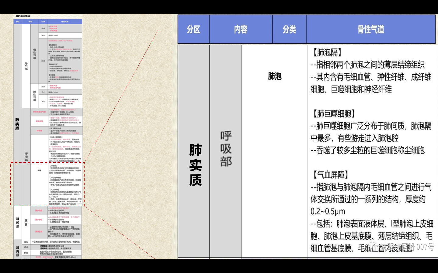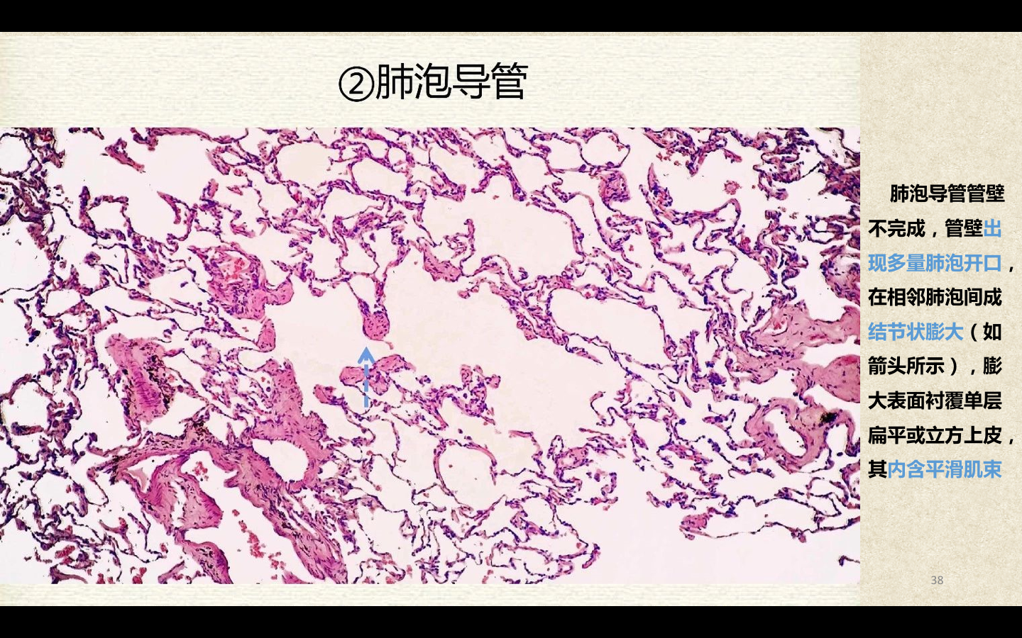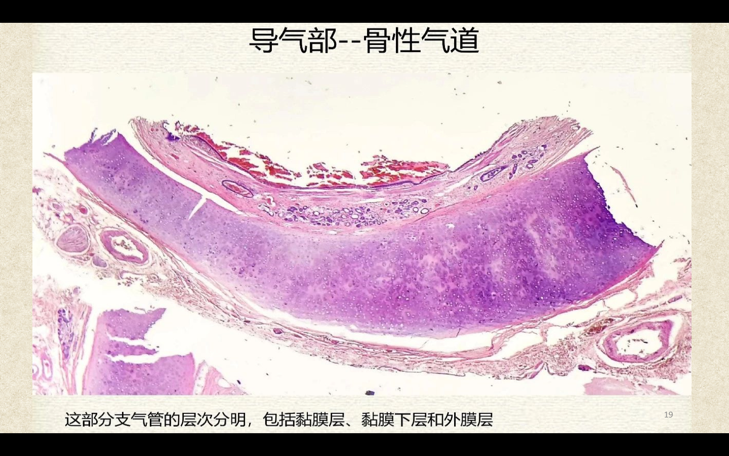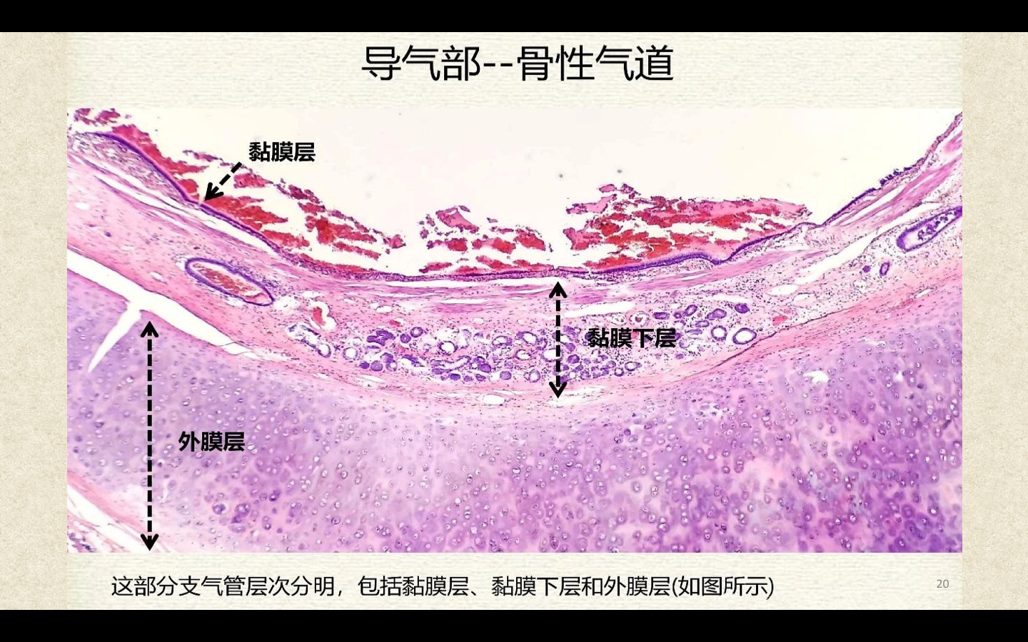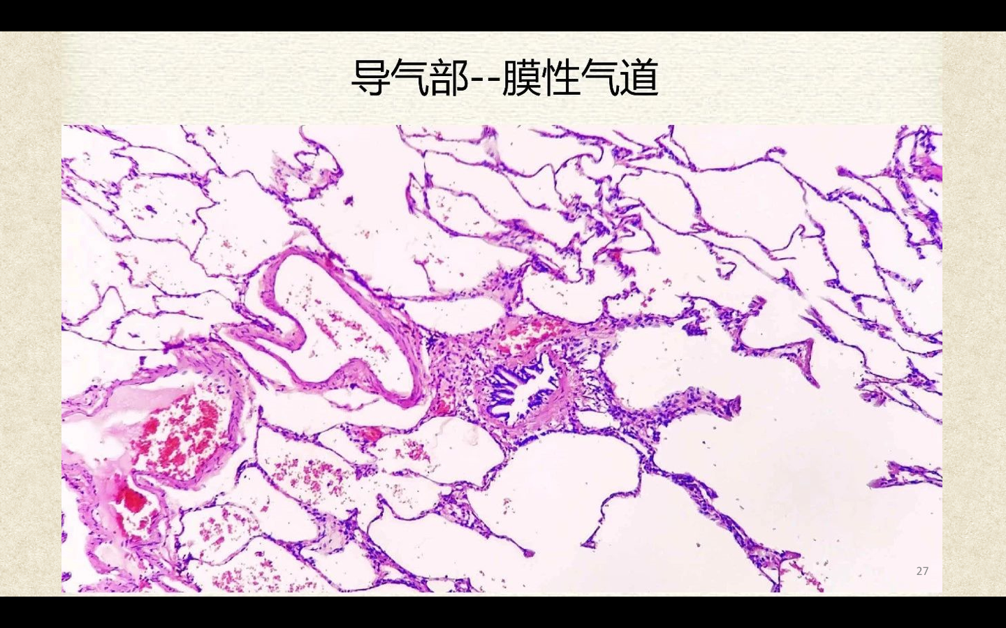 支气管由肺门进入肺中逐级分支形成支气管树,直径<1mm、壁内无软骨及粘膜下腺体者称为细支气管,细支气管的末段称为终末细支气管,当其管壁上有肺泡开口时,则称为呼吸细支气管。呼吸细支气管继续分支为肺泡管和肺泡囊。