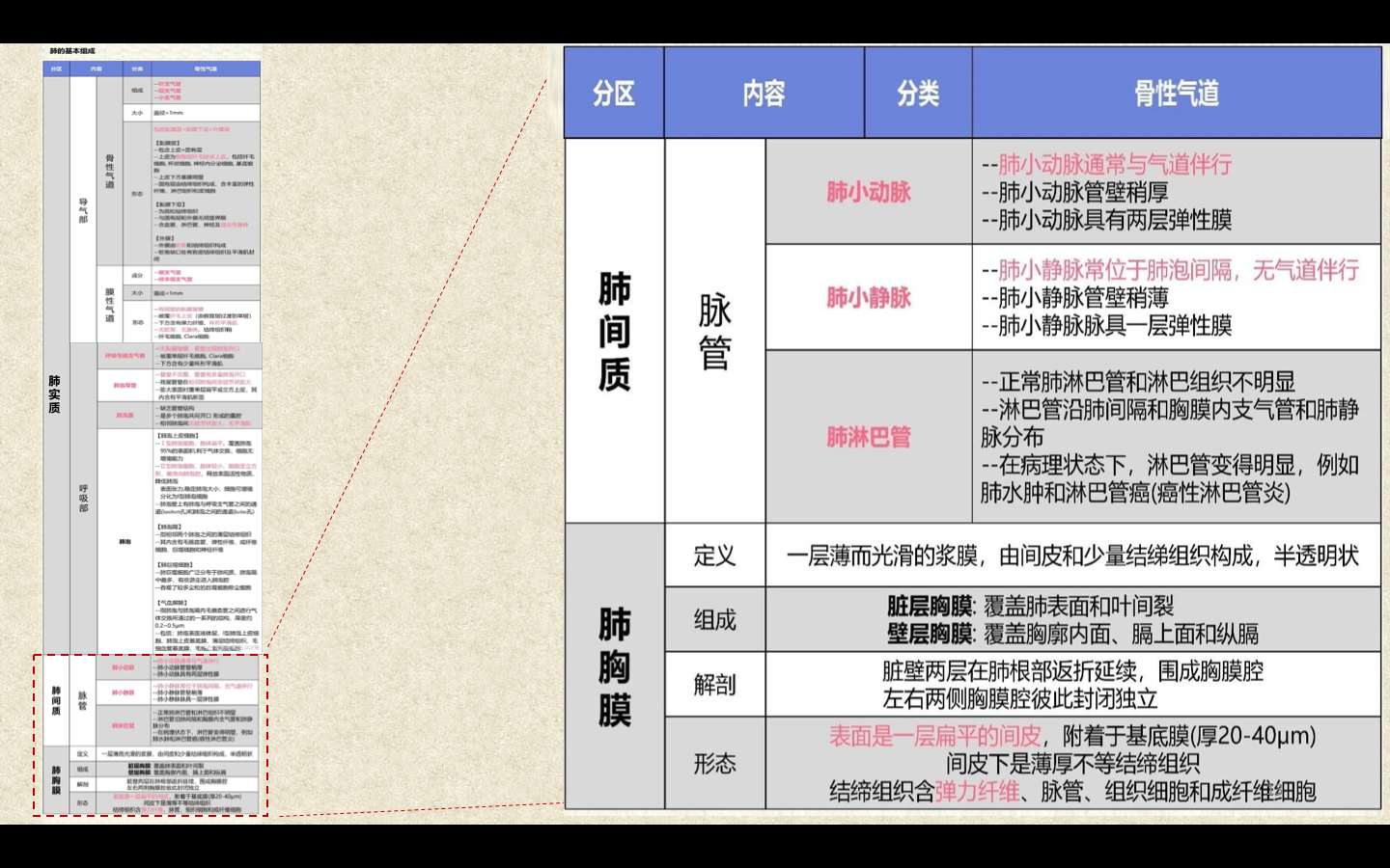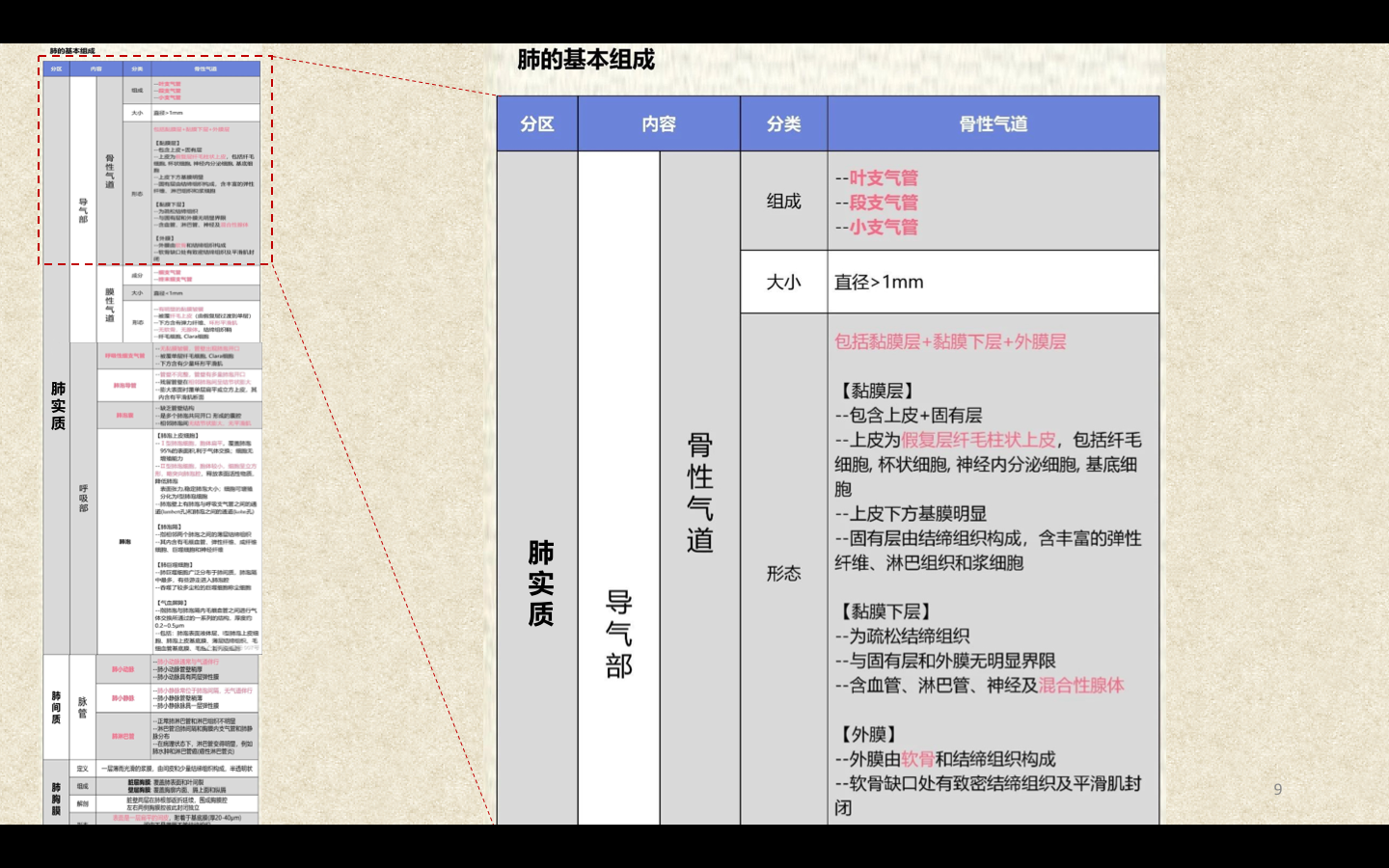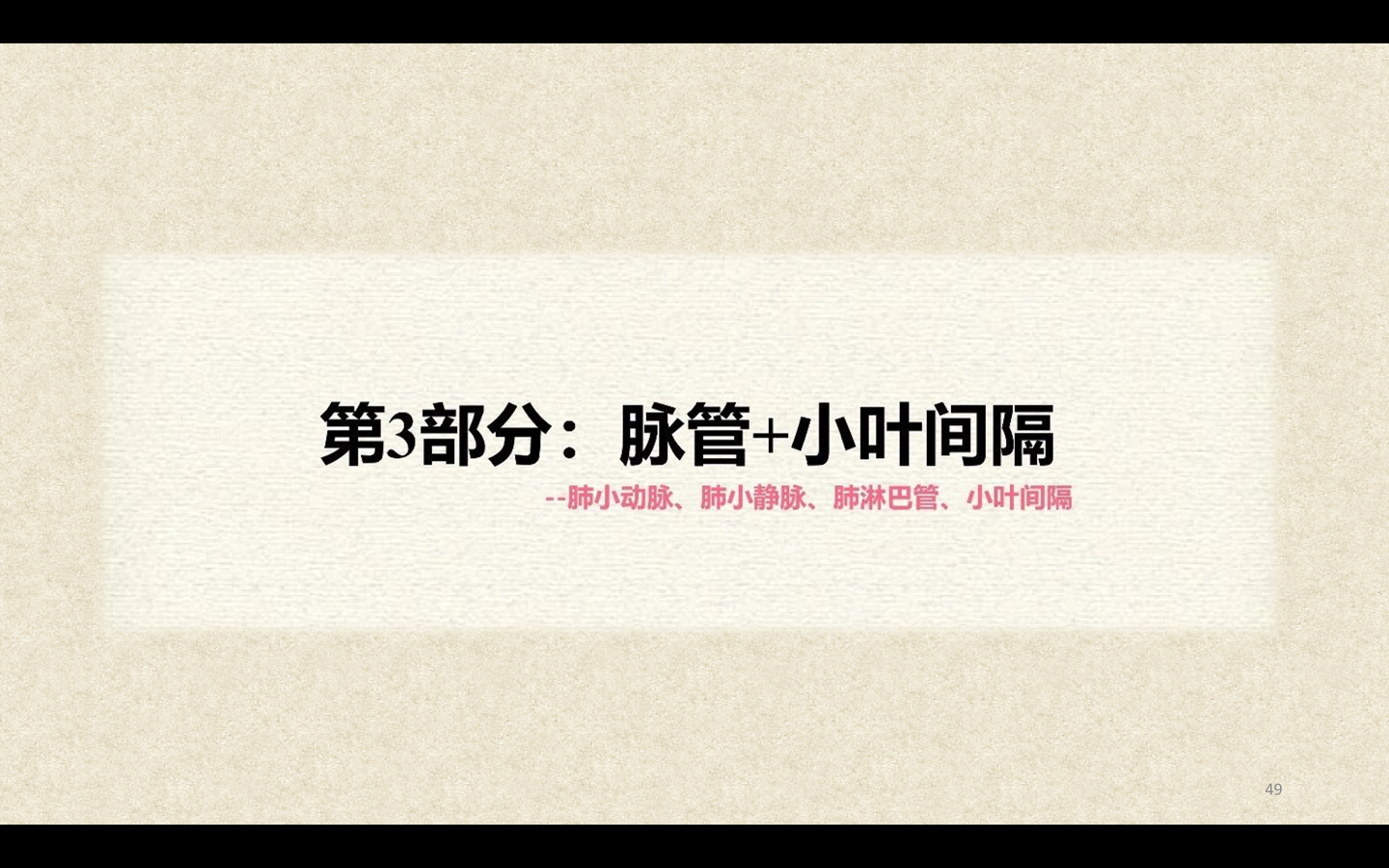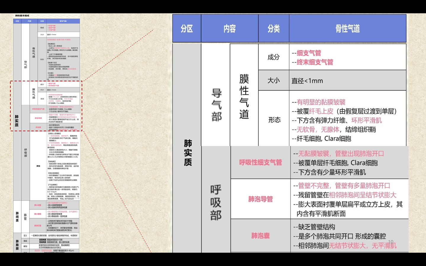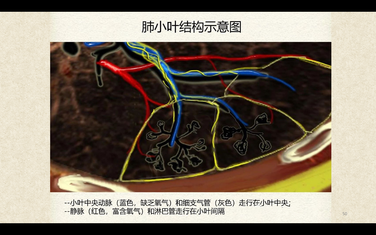 临床上通常将直径<2mm的小、细支气管统称为小气道。3~5个终末细支气管连同它的各级分支及分支末端的肺泡组成肺小叶(lobule),肺小叶呈大小不等的锥体形。Ⅰ级呼吸细支气管及其远端所属的肺组织称为肺腺泡(pulmonary acinus)。