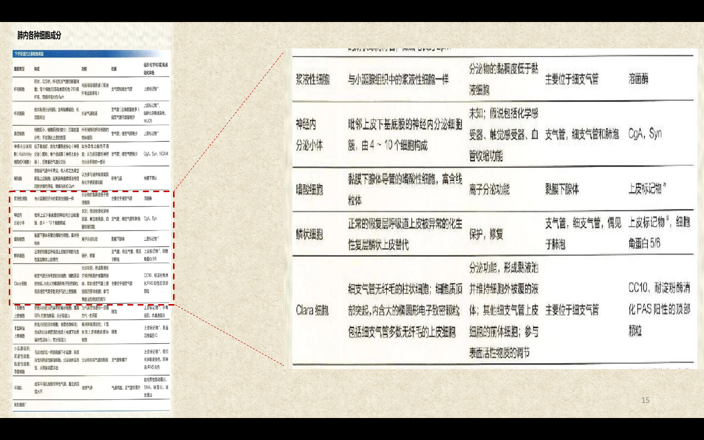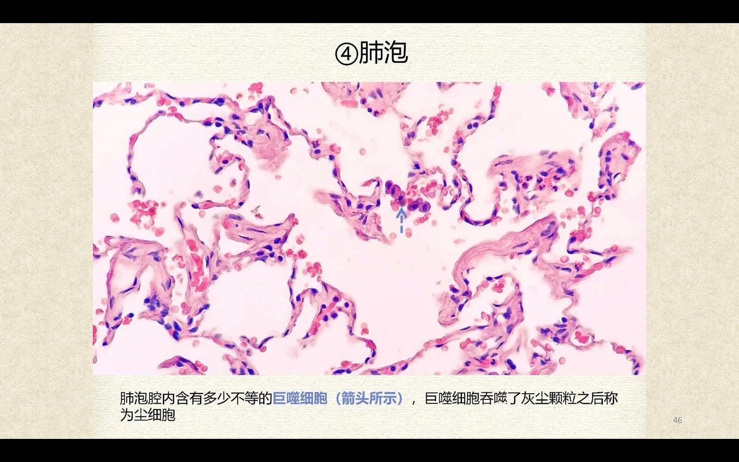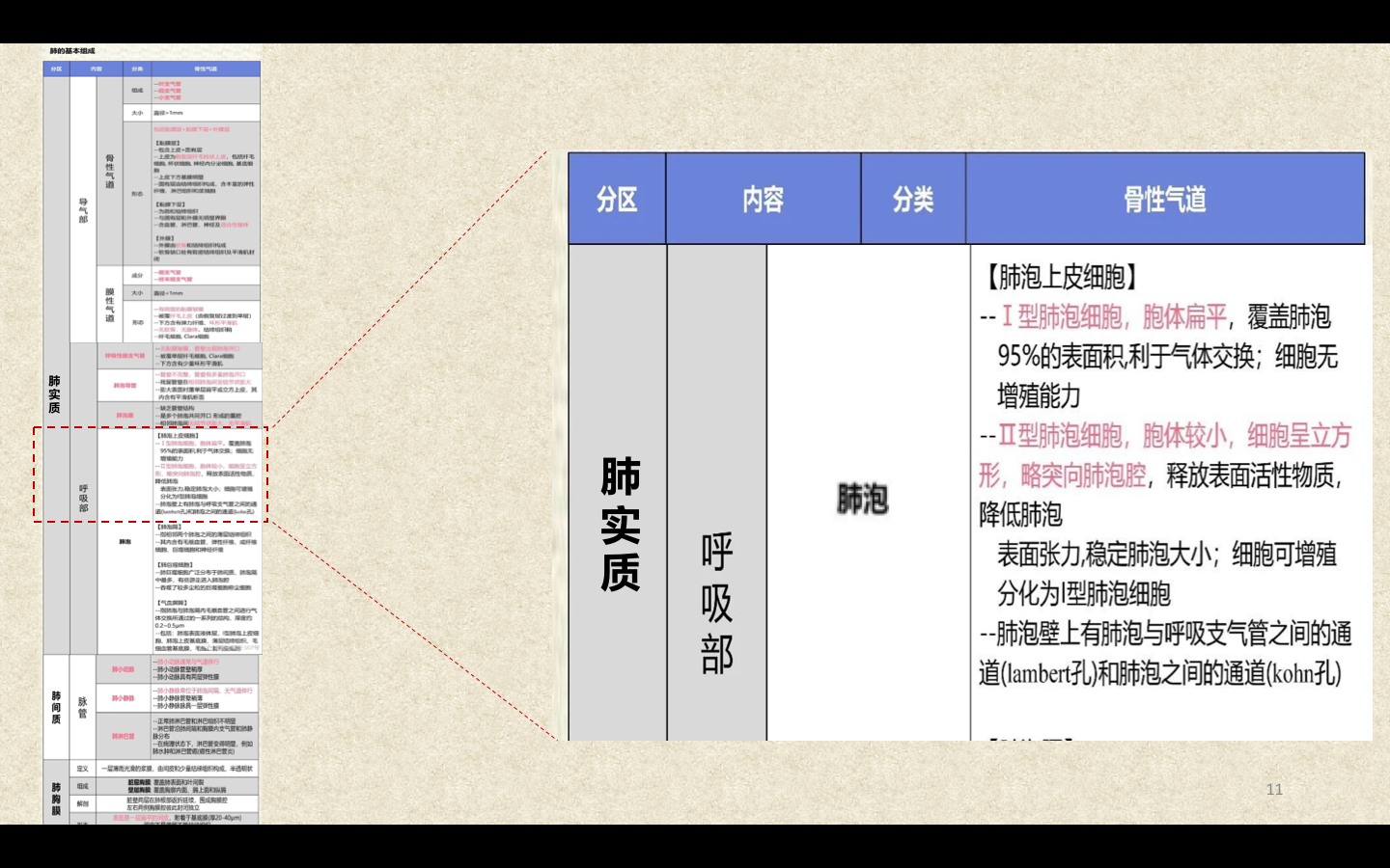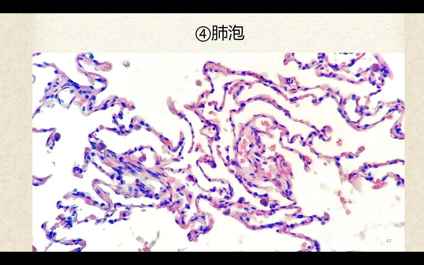 Ⅱ型肺泡上皮细胞呈立方形,数量少,能分泌肺表面活性物质,为一种磷脂蛋白,具有降低肺表面张力、维持肺泡直径及小气道通畅、防止肺萎陷的功能。肺泡壁上的肺泡间孔是肺泡内气体、渗出液或细菌向邻近肺泡扩散的通道。