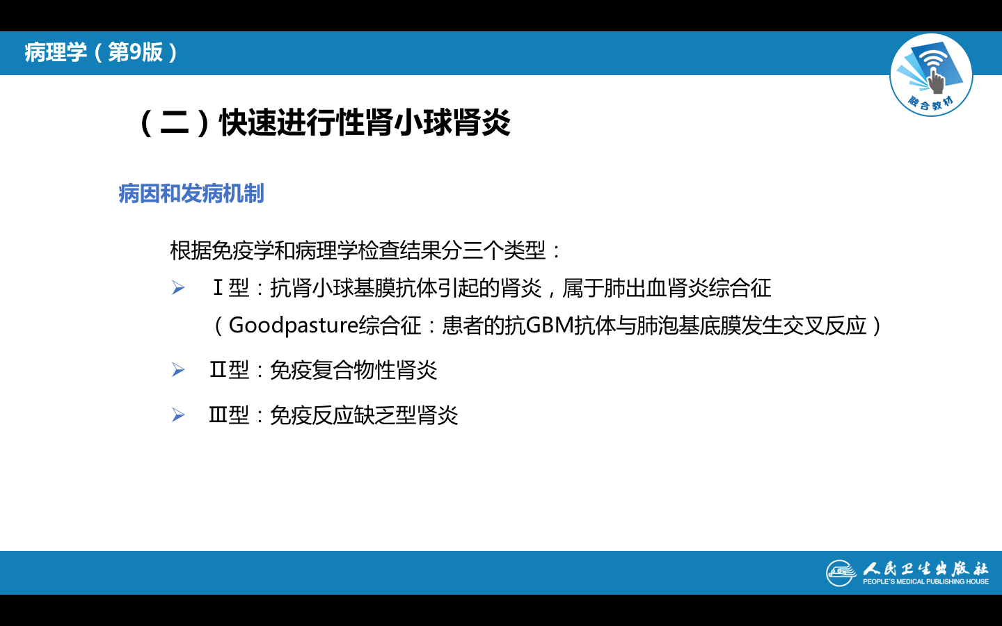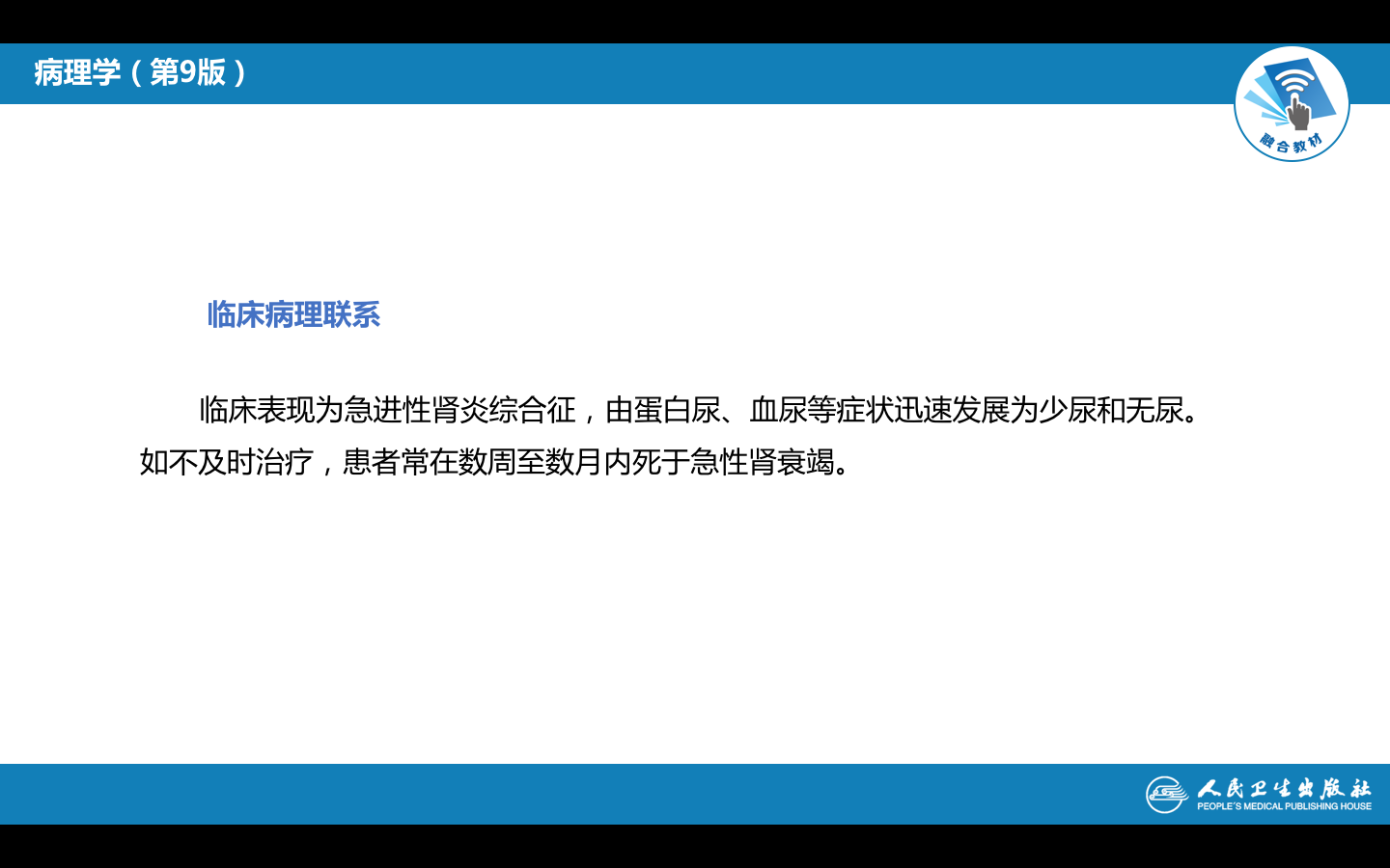 2. 快速进行性肾炎综合征 快速进行性肾炎综合征(rapidly progressive nephritis syndrome)简称快速进行性肾炎。起病或急或缓,表现为血尿、蛋白尿、贫血,快速进展至肾功能衰竭。病理类型主要是新月体性肾小球肾炎。