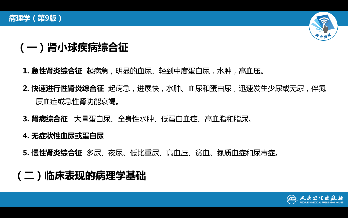 1. 急性肾炎综合征 急性肾炎综合征(acute nephritis syndrome)简称急性肾炎。急性起病,主要表现为血尿、蛋白尿、少尿、常伴高血压和轻度水肿。主要病理类型是毛细血管内增生性肾小球肾炎。