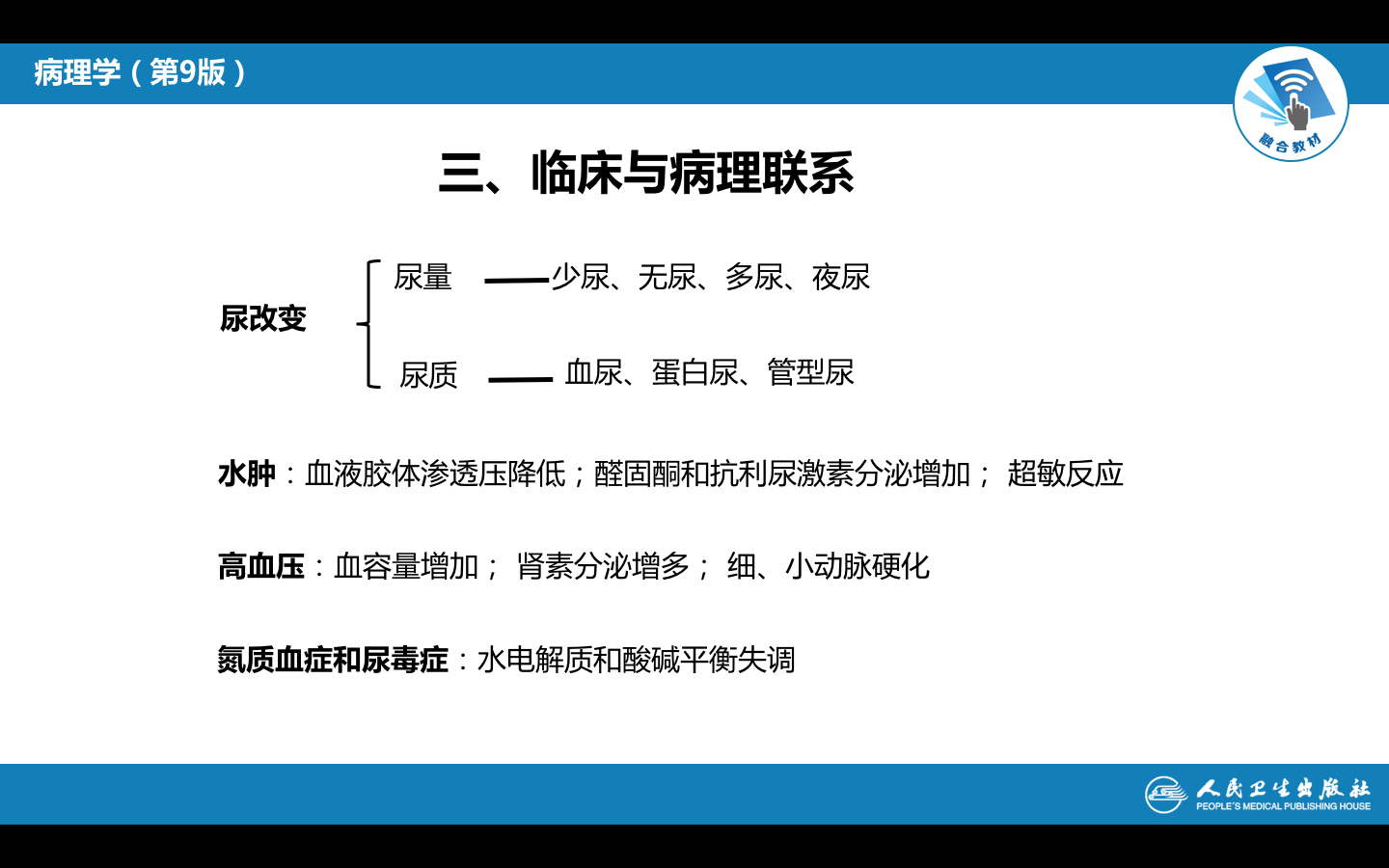 1. 少尿或无尿 24h尿量少于400ml,称少尿(oliguria),少于100ml,称无尿(anuria)。当肾小球内细胞高度增生挤压毛细血管、肾小囊腔有形成分增多并形成新月体、肾小球结构破坏或硬化,均可造成肾小球滤过率下降,出现少尿或无尿。