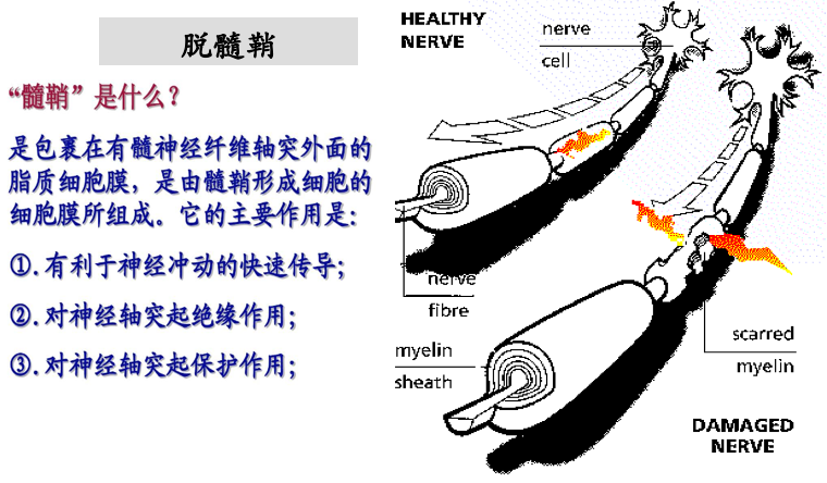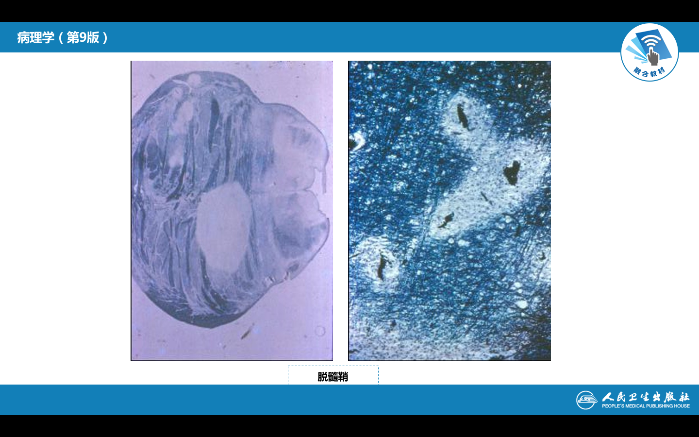 (2)脱髓鞘 少突胶质细胞已形成的髓鞘脱失