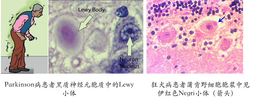 (3)胞浆内包含体形成 多见于各种变性疾病,包含体可用银染色显现。