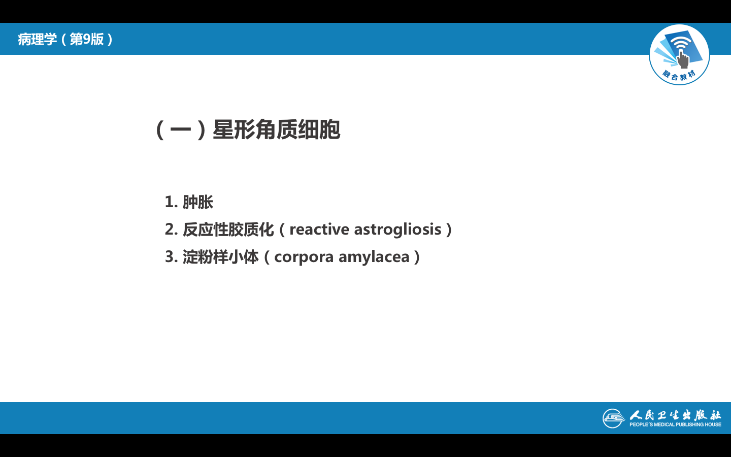 1.星形胶质细胞的基本病变 有肿胀、反应性胶质化、包含体形成等。