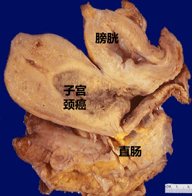 (1).直接蔓延 癌组织向上浸润破坏整段子宫颈,但很少侵犯子宫体,向下可累及阴道穹隆及阴道壁,向两侧可侵及宫旁及盆壁组织,若肿瘤侵犯或压迫输尿管可引起肾盂积水。晚期向前可侵及膀胱,向后可累及直肠。