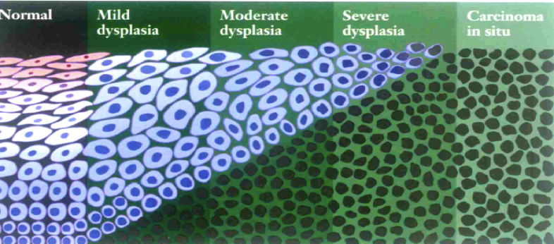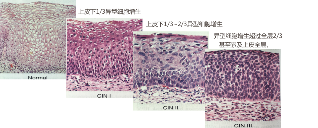 | 正常 | 轻度(Ⅰ级) | 中度(Ⅱ级) | 重度(Ⅲ级) | 原位癌 |
