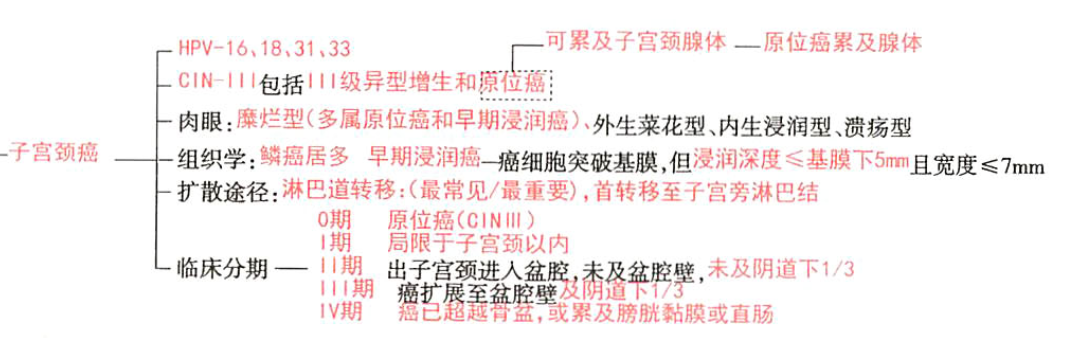 (2)组织分型:子宫颈癌以鳞状细胞癌居多,约占90%左右,其次为腺癌