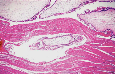 (2)镜下,葡萄胎有以下三个特点:①绒毛因间质高度水肿而增大;②绒毛间质内血管消失,或见少量无功能的毛细血管,内无红细胞;③滋养层细胞有不同程度增生,增生的细胞包括合体细胞滋养层细胞(syncytiotrophblast)和细胞滋养层细胞(cytotrophoblast),两者以不同比例混合存在,并有轻度异型性。滋养层细胞增生为葡萄胎的最重要的特征。