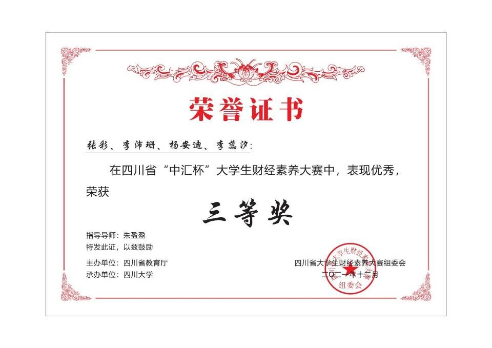 (6)朱盈盈教授指导学生参加四川省“中汇杯”大学生财经素养大赛获三等奖