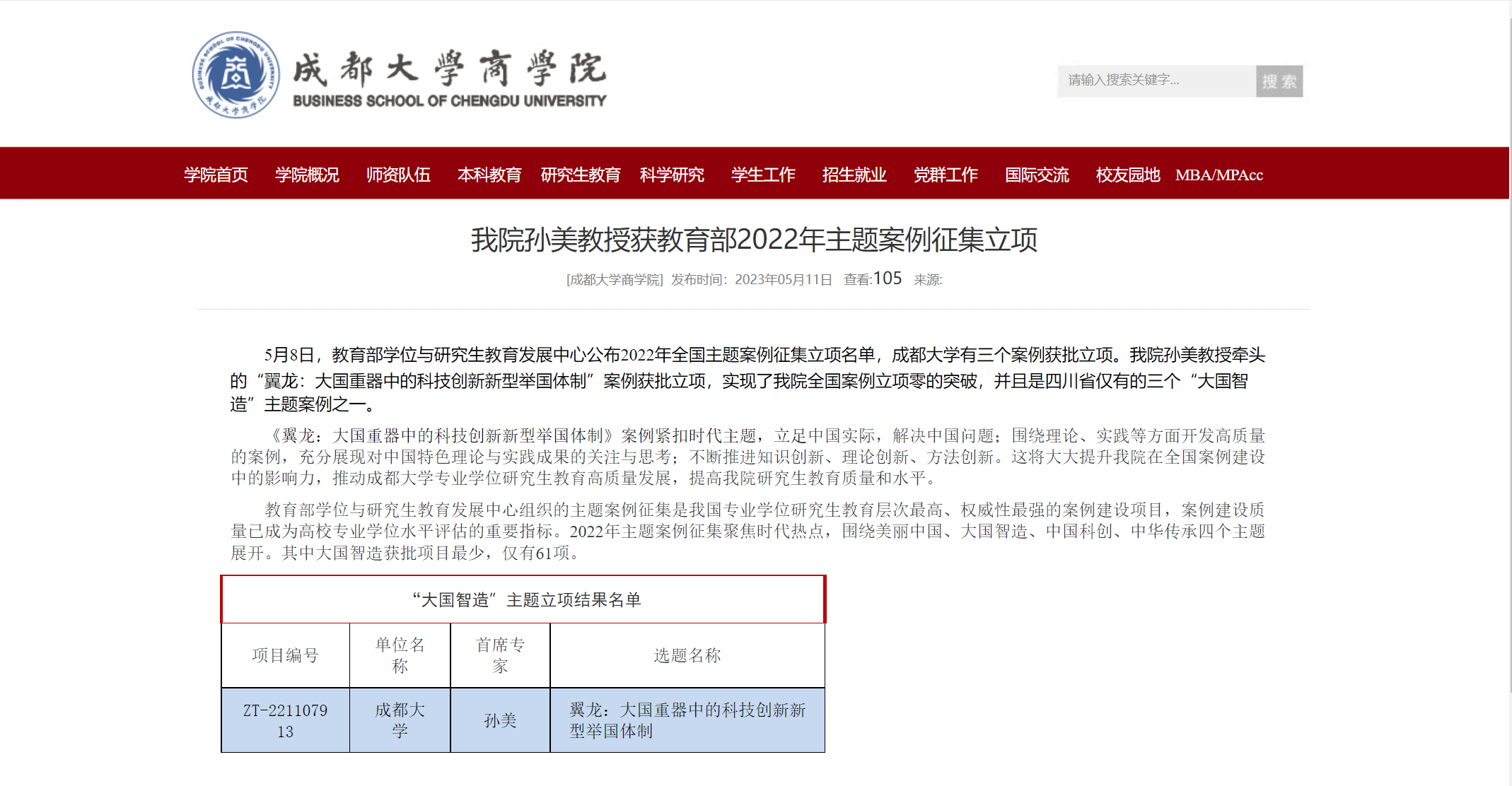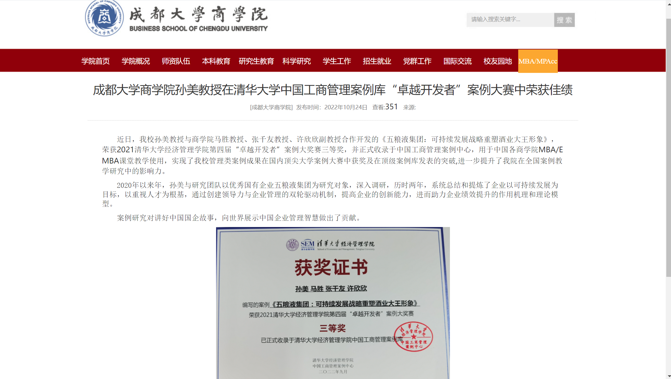 (4)成都大学商学院孙美教授在清华大学中国工商管理案例库“卓越开发者”案例大赛中荣获佳绩