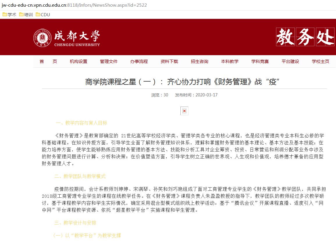 (4)《财务管理》课程立项四川省教育厅首批地方普通本科高校应用型示范课程