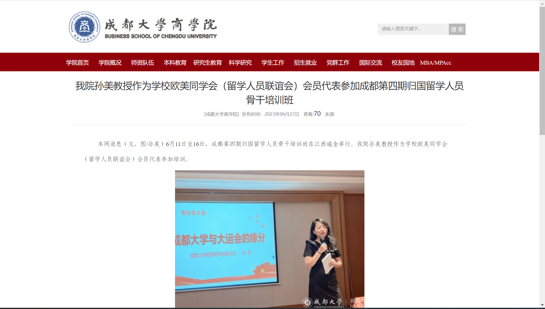(1)孙美教授作为学校欧美同学会会员代表参加成都第四期归国留学人员骨干培训班