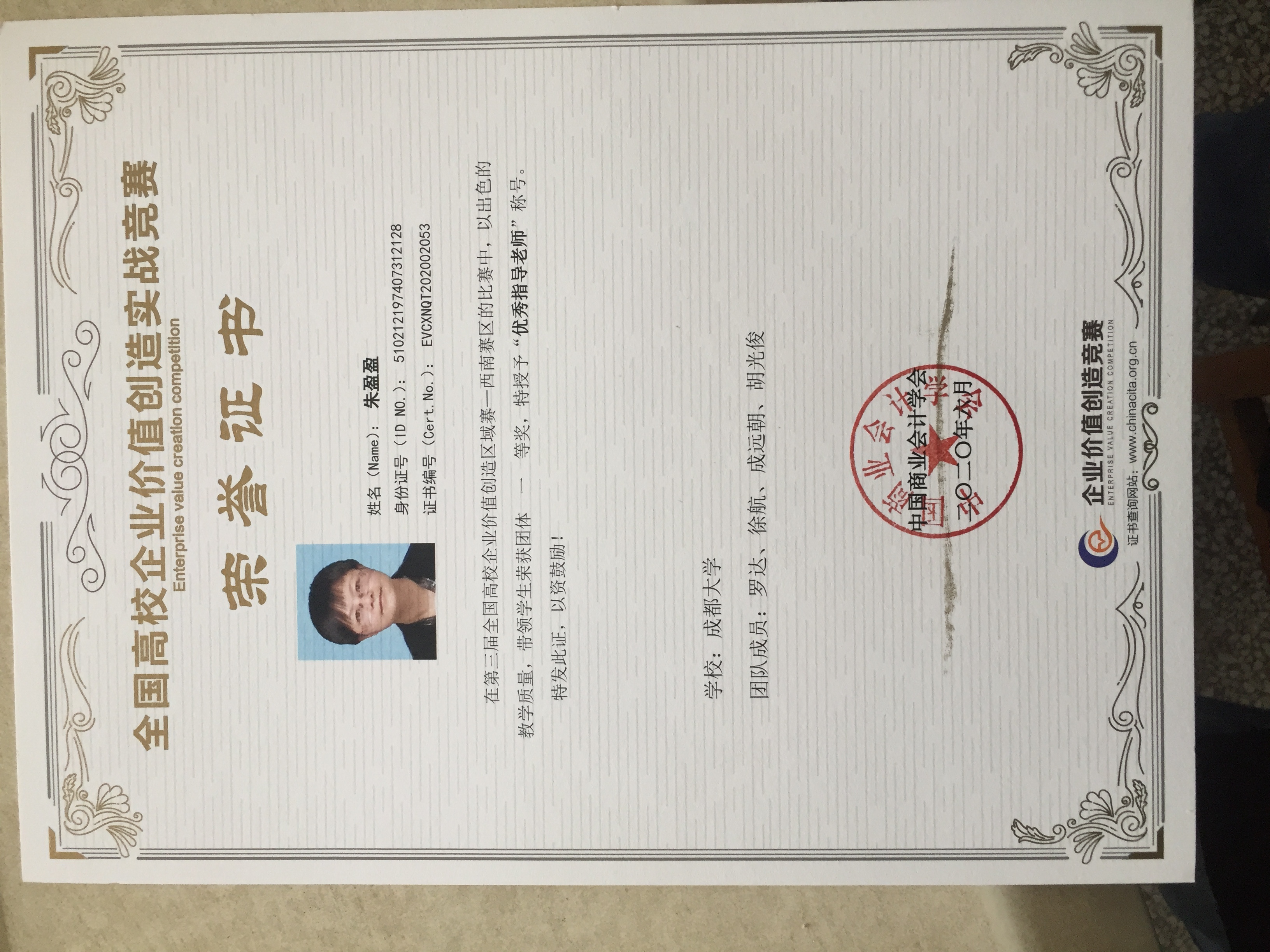 (5)朱盈盈教授指导学生参加“全国高校企业价值创造实战竞赛”获团体一等奖