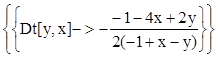 得到导数满足的方程deq2:1+4x-2y+2 Dt[y,x]-2x Dt[y,x]+2y Dt[y,x]= =0