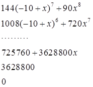 输入Clear[f];f[x_]=x^10+2*(x-10)^9;D[f[x],{x,2}]