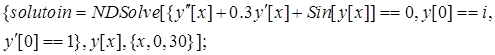 命令:NDsolve[{微分方程,定解条件},y,{x,xmin,xmax}]