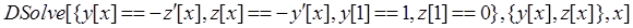 Dsolve[{微分方程组,定解条件},{y[x], …,z[x]},x]