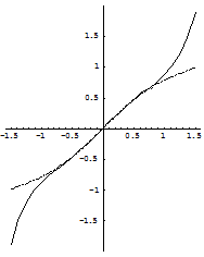 输入 Plot[Evaluate[{ArcTan[x],Poly}],{x,-3/2,3/2},