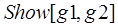 Show[g1,g2,…]在同一坐标系中显示几幅图形.