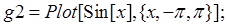 例如: In[1]:=Plot[Sin[x],{x,0,2Pi}];
