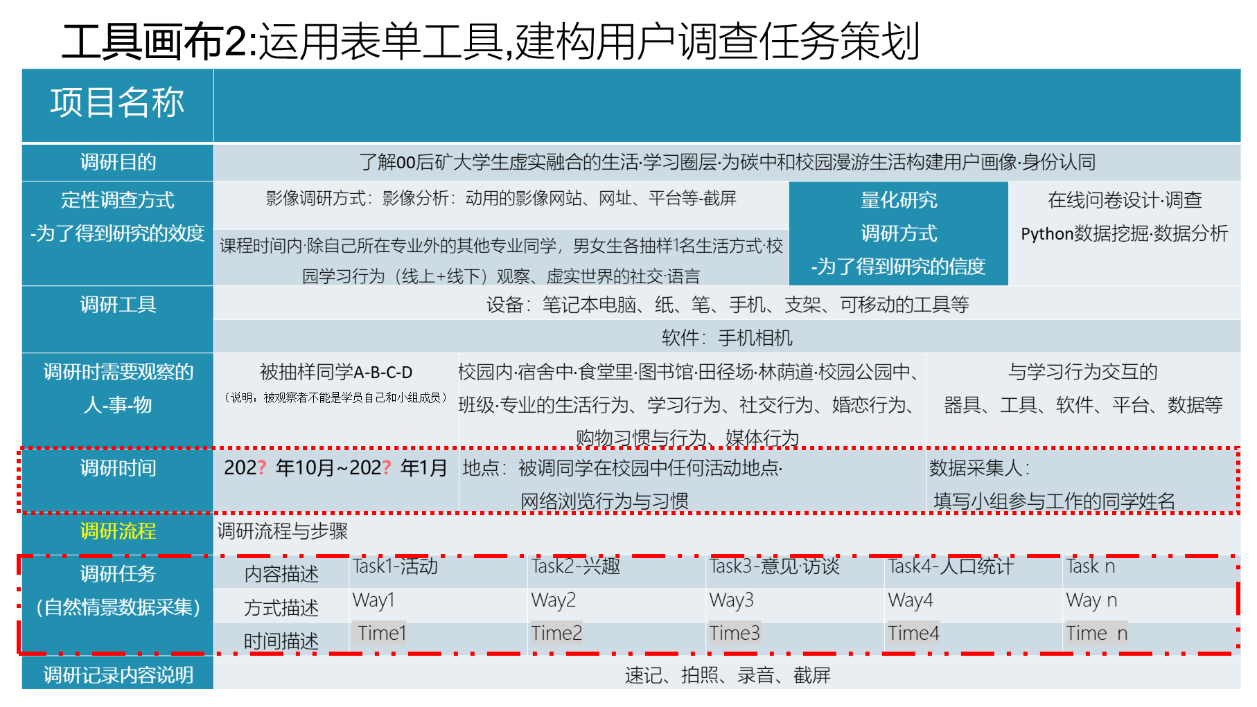 摘要:历经8周共16次课32学时,艰辛的用户调查:观察·表演·操作·活动等一系列的具身认知与体验,同学们手中已经拥有了不少真实的图像·影像·眼耳鼻舌身意形的体验记忆,作为设计师,需要熟练掌握用户研究·共情分析的方法论工具模板,在图像和影像中挖掘相关数据转,解构所观察到的人-事-物-时-空关系,以支撑可穿戴设备方案设计工作的合理开展!