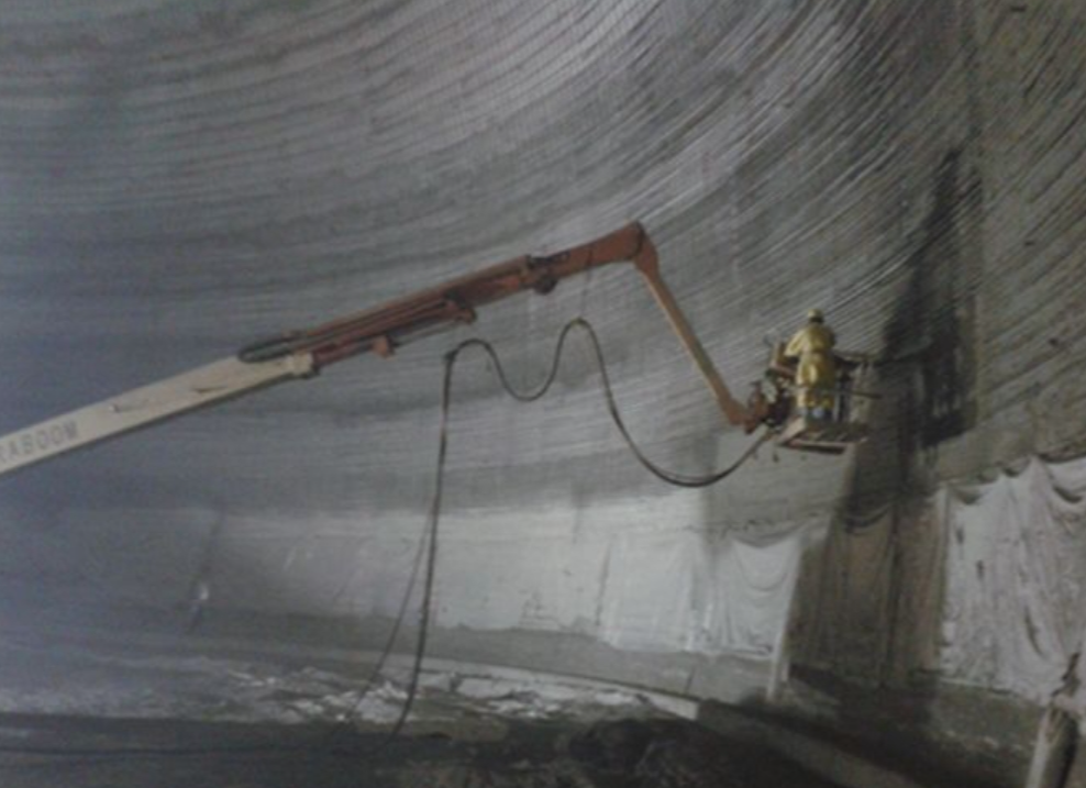 (5)钢筋混凝土结构:聚氨酯喷射完成后,进行钢筋的绑扎,在内部喷射混凝土。