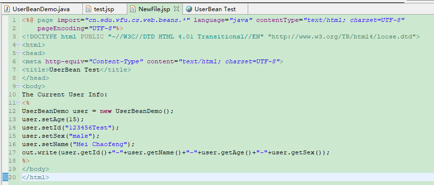 <jsp: useBean>中的JavaBean不同于EJB开发中的Bean也不同于GUI开发中的Bean,它是一类特殊的Java类在JSP开发中是提供给JSP/Servlet使用的,它的设计通常遵循如下基本要求: