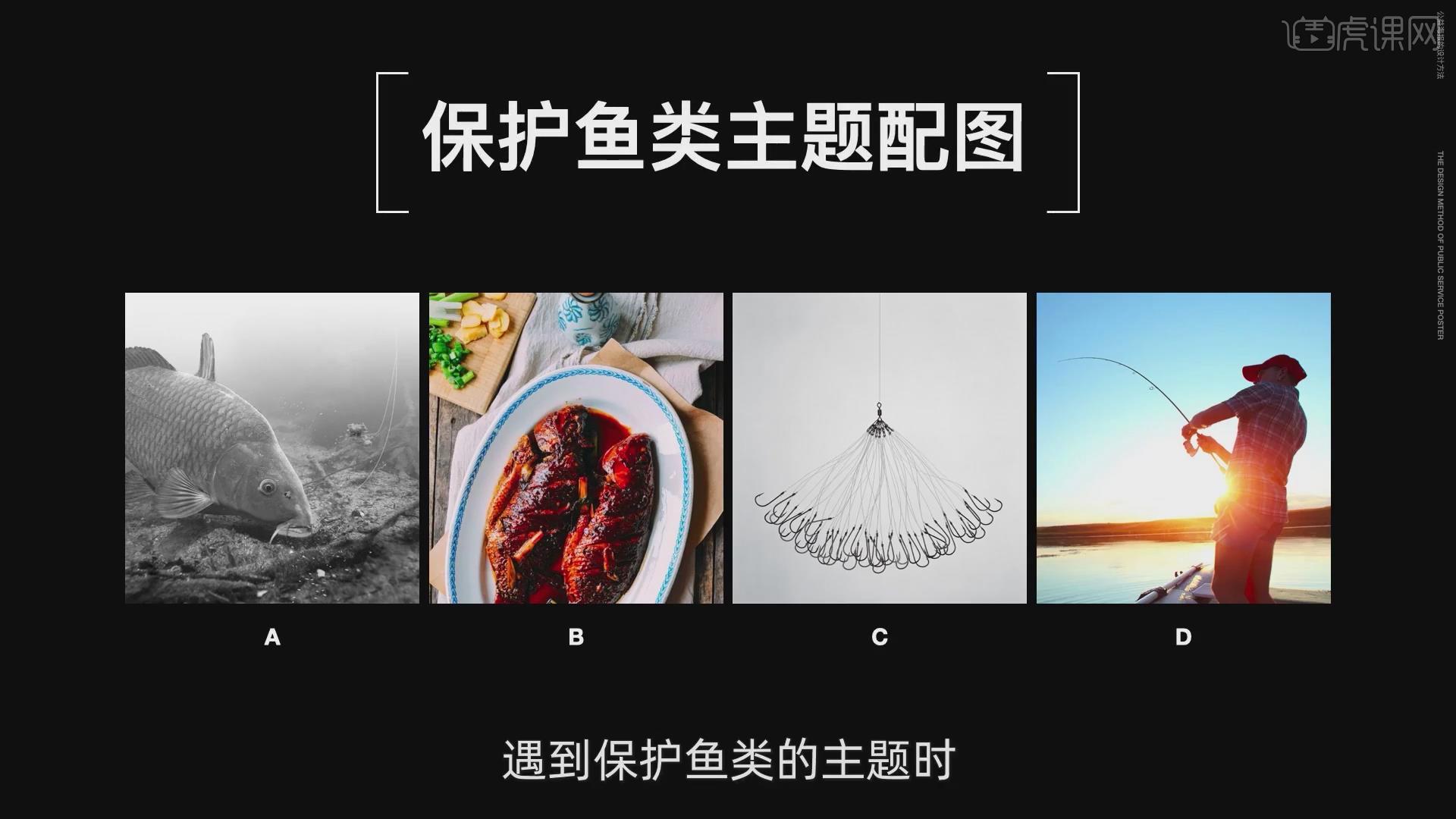 8. 这里有a、b、c、d四张图片,当我们需要设计一张“保护鱼类主题”时候,我们该怎么去选择呢?看到选项C上面有非常多的鱼钩,这张图就可以很好的体现“过度捕捞”的感觉。