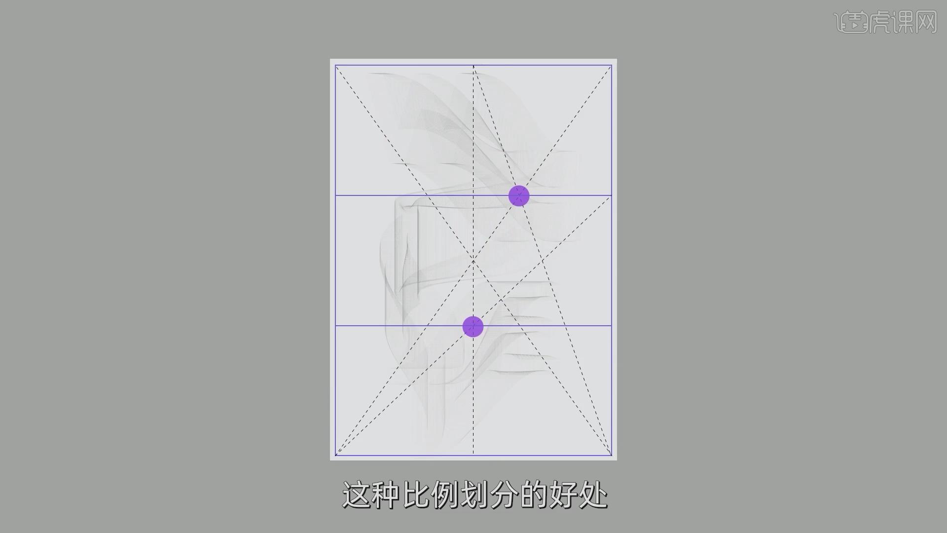 14. 版心确认之后通过【比例的分割】得到横向的参考线,然后继续做【动态的风格】就得到了下面的这条比例参考线,这种比例划分的好处来源于没有度量衡的时期,人们可以用这种动态风格的方式得到精确的比例。