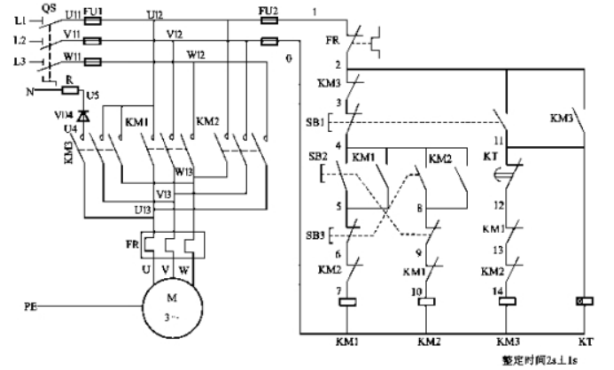 三相异步电动机双重联锁正反转启动能耗制动的控制线路图