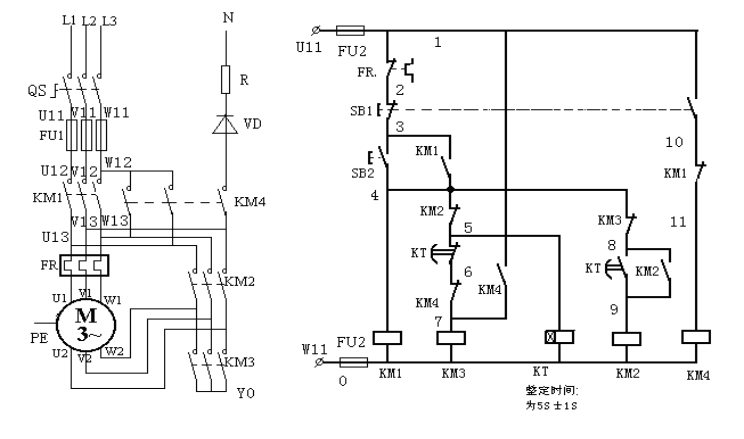 通电延时带直流控制能耗制动Y-△启动控制线路排故图