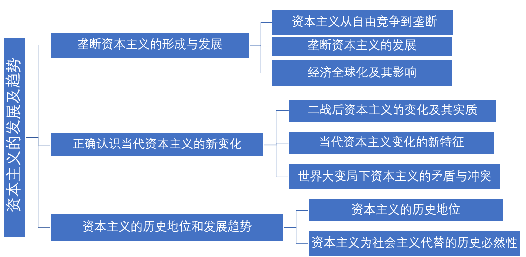 了解资本主义从自由竞争发展到垄断的进程,科学认识国家垄断资本 主义和经济全球化,正确认识第二次世界大战后资本主义的变化及其实 质,当代资本主义变化的新特征,世界大变局下资本主义的矛盾与冲突, 深刻理解资本主义的历史地位及其为社会主义所代替的历史必然性,坚定 资本主义必然灭亡、社会主义必然胜利的信念。