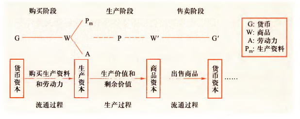 资本作为一种能够增殖的价值,不仅在生产过程内运动,而且也在流 通过程内运动,要深刻认识资本价值增殖的秘密,还必须考察资本的流 通。马克思在分析资本流通过程中,首先详尽地分析了个别资本的运动, 即资本的循环和周转过程,揭示了资本循环周转规律。资本循环是资本从一种形式出发,经过一系列形式的变化,又回到原 来出发点的运动。产业资本在循环过程中要经历三个不同的阶段,与此相 联系的是资本依次执行三种不同的职能。第一个阶段是购买阶段,即生产 资料和劳动力的购买阶段。它属于商品的流通过程。在这一阶段,产业资本执行的是货币资本的职能。第二个阶段是生产阶段,即生产资料与劳动力按比例结合在一起从事资本主义生产的阶段。在这个阶段上,生产资料与劳动者相结合生产物质财富并使生产资本得以增殖,产业资本执行的是生产资本的职能。第三个阶段是售卖阶段,即商品资本向货币资本的转化阶段。在此阶段,产业资本执行的是商品资本的职能,通过商品售卖不仅 要实现商品的价值,还要实现剩余价值。