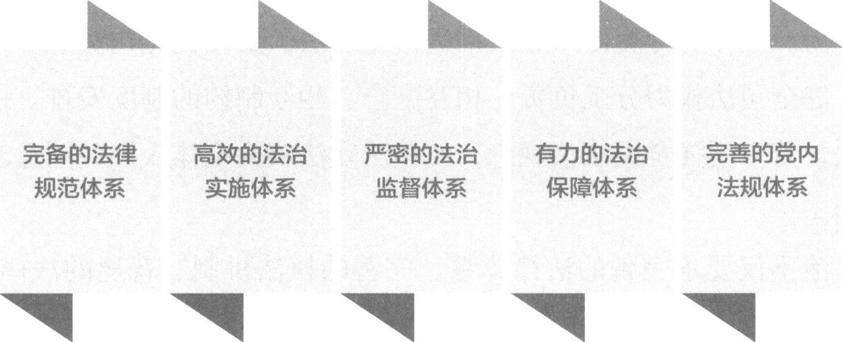第一,紧紧围绕全面推进依法治国总目标,加快建设中国特色社会主义法治体系。法治体系是国家治理体系的骨干工程,必须加快形成完备的法律规范体系、高效的法治实施体系、严密的法治监督体系、有力的法治保障体系、完善的党内法规体系。一是加快形成完备的法律规范体系。完善以宪法为统帅的中国特色社会主义法律体系,把国家各项事业和各项工作纳入法制轨道。二是加快形成高效的法治实施体系。用科学有效、系统完备的制度体系保证宪法实施,维护宪法尊严,把实施宪法提高到新水平。加快建设执法、司法、守法等方面的体制机制,坚持依法行政和公正司法,做到有法必依、执法必严、违法必究,确保法律的全面有效实施。三是加快形成严密的法治监督体系。加强党内监督、人大监督、民主监督、行政监督、监察监督、司法监督、审计监督、社会监督、舆论监督制度建设,努力形成科学有效的权力运行制约和监督体系,增强监督合力和实效。四是加快形成有力的法治保障体系。加强和改进党对全面依法治国的领导,提高依法执政能力和水平,为全面依法治国提供有力的政治和组织保障。着力建设一支忠于党、忠于国家、忠于人民、忠于法律的社会主义法治工作队伍。五是加快形成完善的党内法规体系。坚持依法治国和依规治党有机统一,完善党内法规制定体制机制,注重党内法规同国家法律的衔接和协调,构建以党章为根本、若干配套党内法规为支撑的党内法规制度体系,提高党内法规执行力。