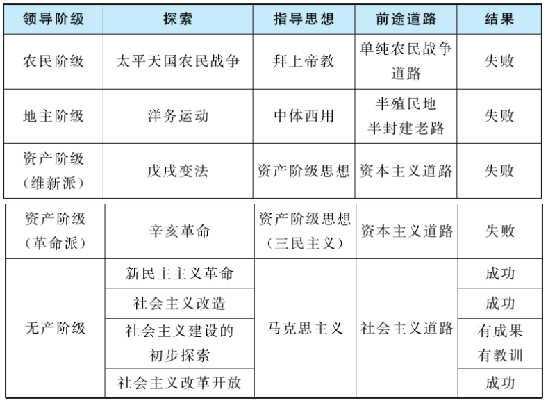 2.史纲学习的基本线索:自1840年鸦片战争以来,中国社会各阶级(农民阶级、地主阶级、资产阶级、无产阶级)为了救亡图存而进行奋斗的历史。