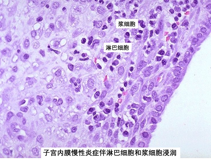 慢性炎症的病程较长,数月至数年以上。可由急性炎症迁延而来,或由于致炎因子的刺激较轻并持续时间较长,一开始即呈慢性经过。如结核病或自身免疫性疾病等。慢性炎症时,局部病变多以增生改变为主,变质和渗出较轻;炎细胞浸润多以淋巴细胞、巨噬细胞和浆细胞为主。根据形态学特点,慢性炎症可分为非特异性慢性炎和肉芽肿性炎两大类。