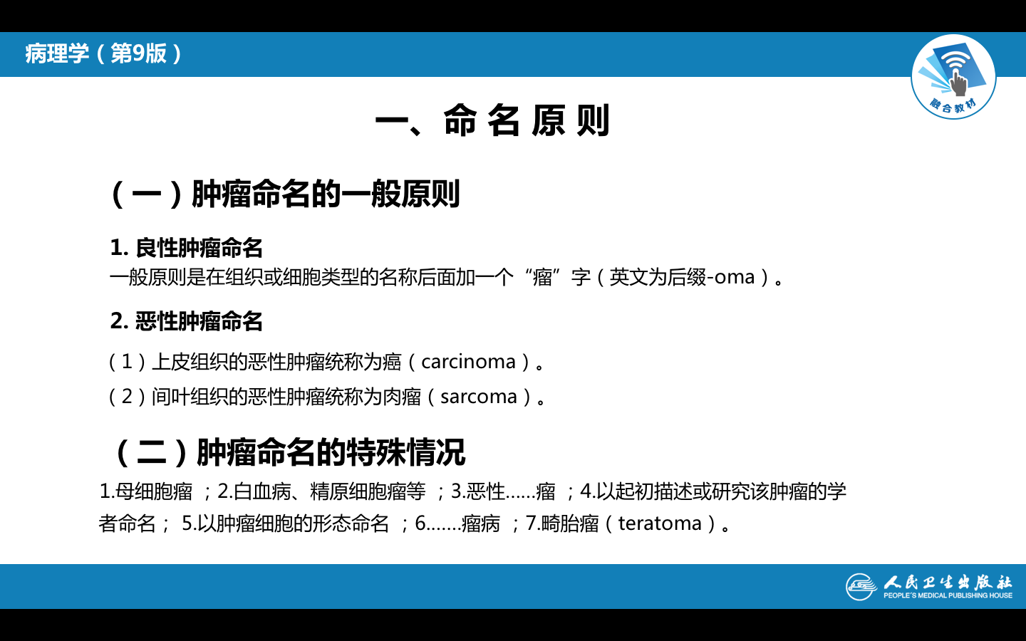 良性肿瘤在其来源组织名称之后加“瘤”(-oma)字。