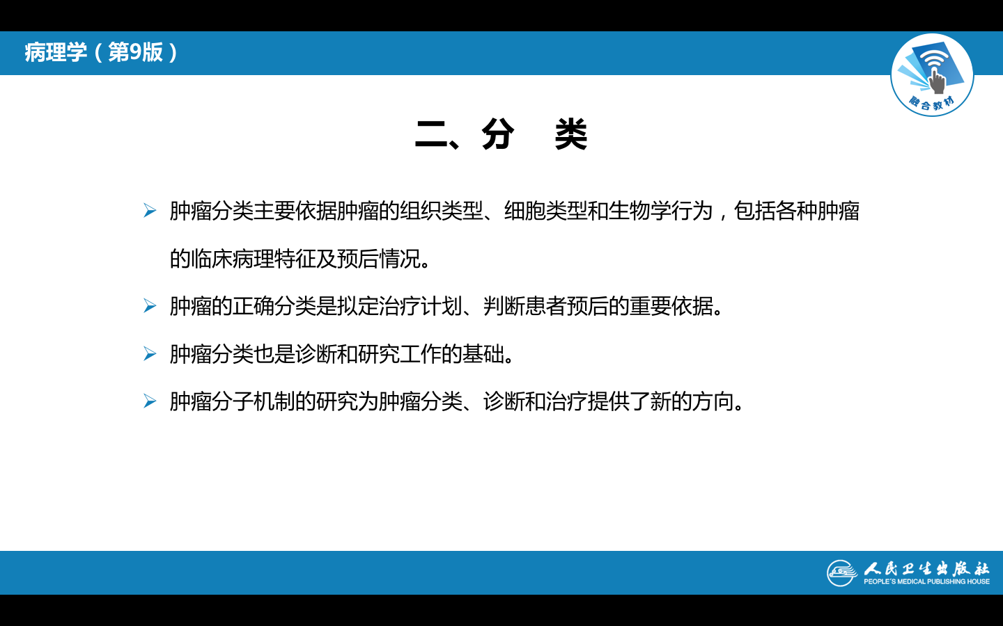 肿瘤的分类通常依据其组织来源或者分化方向分为几大类。每一大类又可分为良性与恶性二组。目前全世界统一的肿瘤分类是采用由世界卫生组织(WHO)制定的肿瘤组织学分类第二版(1989-2000年)。