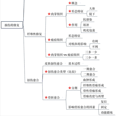 如果损伤的实质细胞有再生能力和适宜条件,则通过邻近存留的同种实质细胞再生进行修补恢复,因为此种修复可完全恢复原有细胞、组织的结构和功能,故称此为再生性修复或完全性修复;在病理状态下,如果实质细胞不能再生或仅有部分能再生,组织缺损则全部或部分由新生的富于小血管的纤维结缔组织(肉芽组织)来修补充填缺损,并形成瘢痕,因为它只能恢复组织的完整性,不能完全恢复原有的结构和功能,故称此为瘢痕性修复或不完全性修复。